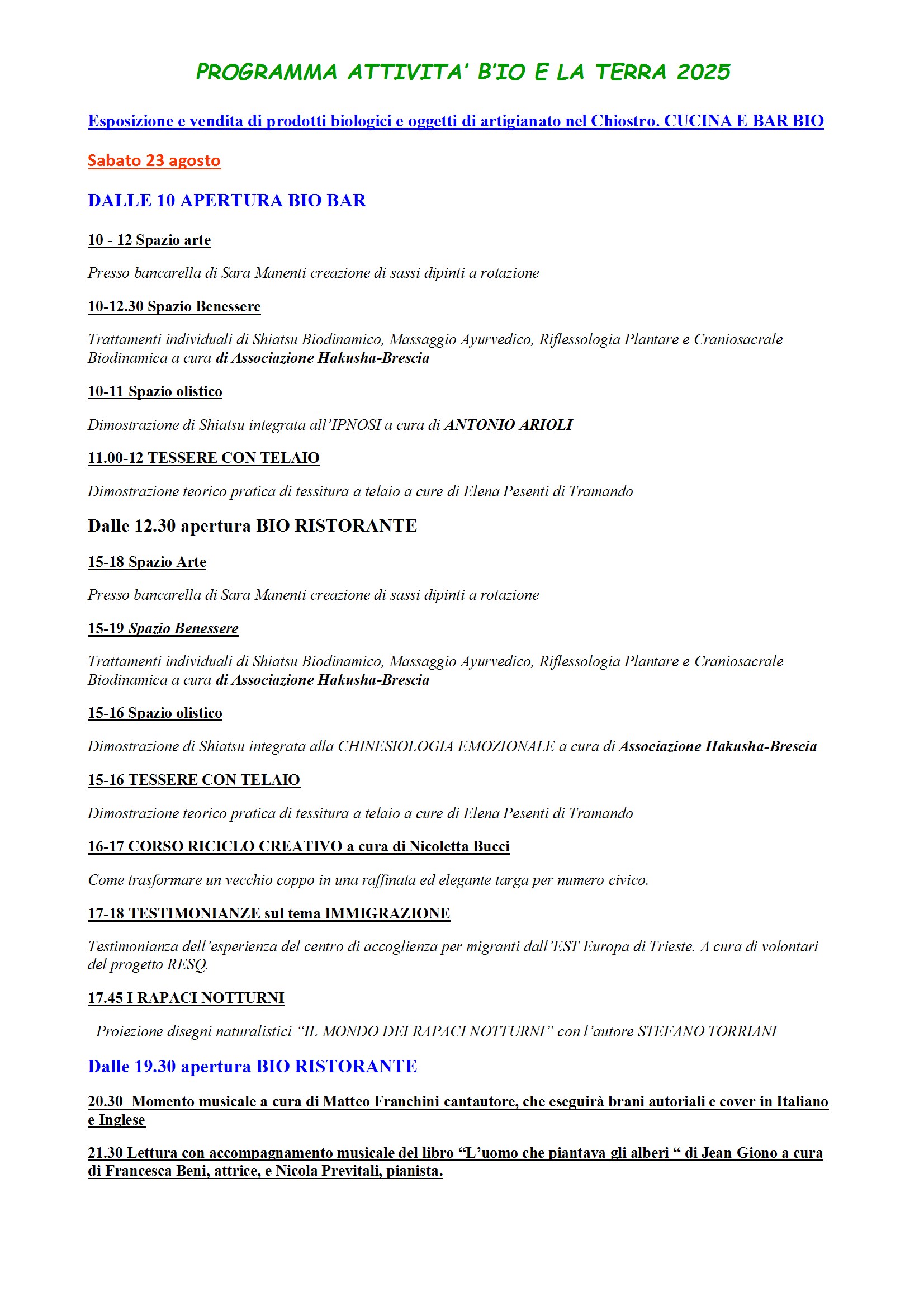 che si terrà presso la cooperativa Il Sole e la Terra il 18 settembre.