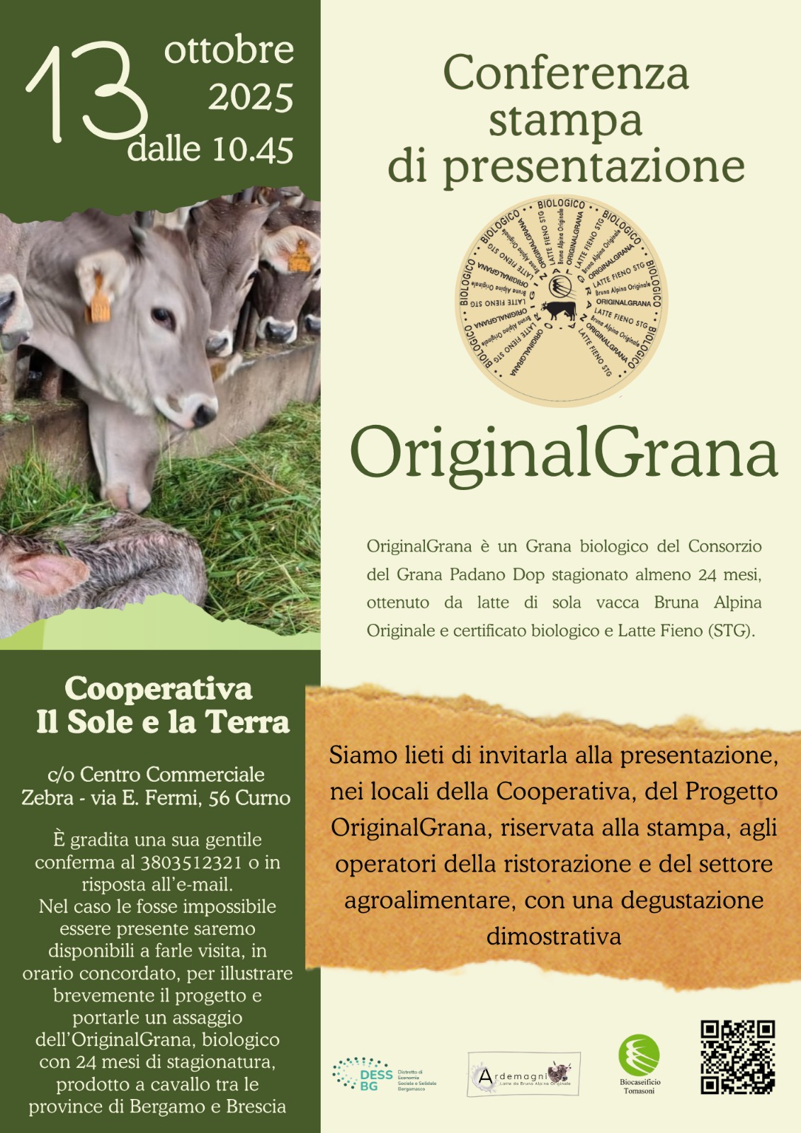 Lunedì 13 ottobre 2025 si terrà la Conferenza stampa di presentazione del progetto e del prodotto OriginalGrana.