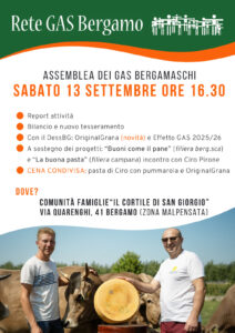 Durante l'assemblea si parlerà infatti di progetti virtuosi sostenuti dai GAS come "Buoni come il pane" la filiera bergamasca della farina e del pane e "La buona pasta" che promuove una filiera campana.