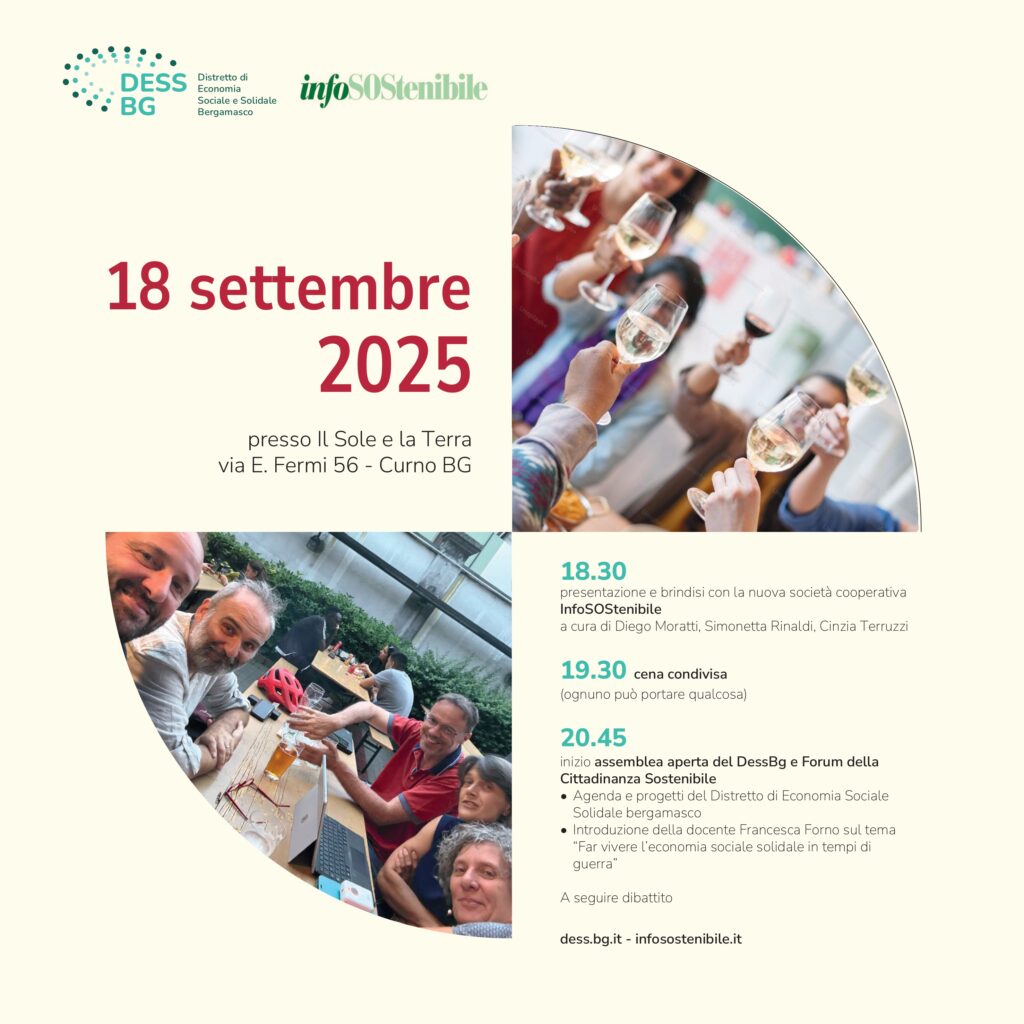 - 20.45 - assemblea aperta: l’agenda del DessBg e l’introduzione di Francesca Forno, “Far vivere l’economia solidale in tempi di guerra”