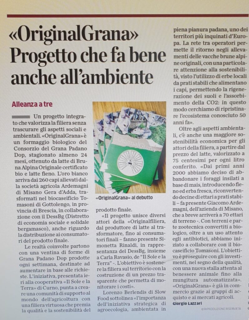"OriginalGrana" è il nome di un progetto territoriale che deriva da un accordo che mira a creare una relazione stretta tra produttore, trasformatore e consumatori, promuovendo la sostenibilità ambientale, sociale, economica e la sovranità alimentare nell’ambito territoriale che coinvolge le province di Bergamo e Brescia.